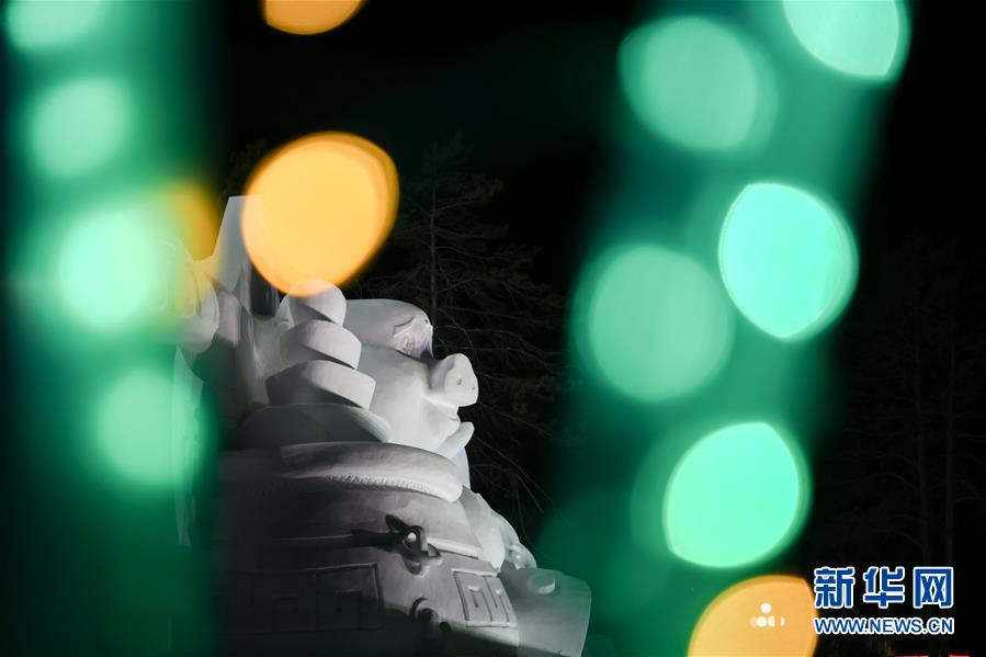 1月4日在哈尔滨太阳岛国际雪雕艺术博览会园区拍摄的雪塑。 新华社记者王松摄