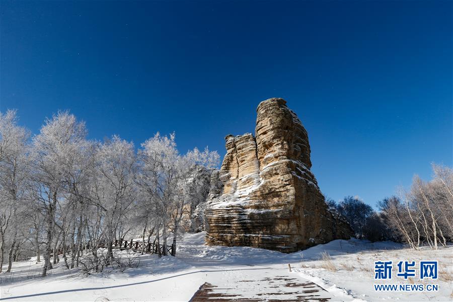 这是1月4日拍摄的阿斯哈图石阵旅游区雪后美景。 新华社记者 虞东升 摄