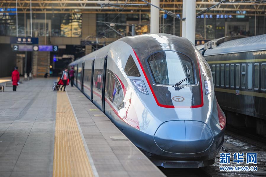 1月5日,在山东烟台火车站,乘客准备乘坐烟台开往上海的G462次“复兴号”列车。 当日零时起,全国铁路实行新的列车运行图,“复兴号”列车首次驶入山东省胶东地区,方便当地旅客出行。 新华社发(初阳 摄)