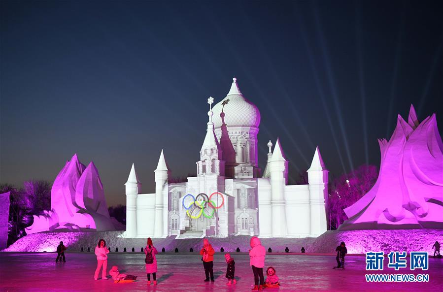 游客在3D雪秀演出现场玩冰雪娱乐项目(1月4日摄)。 新华社记者王建威摄