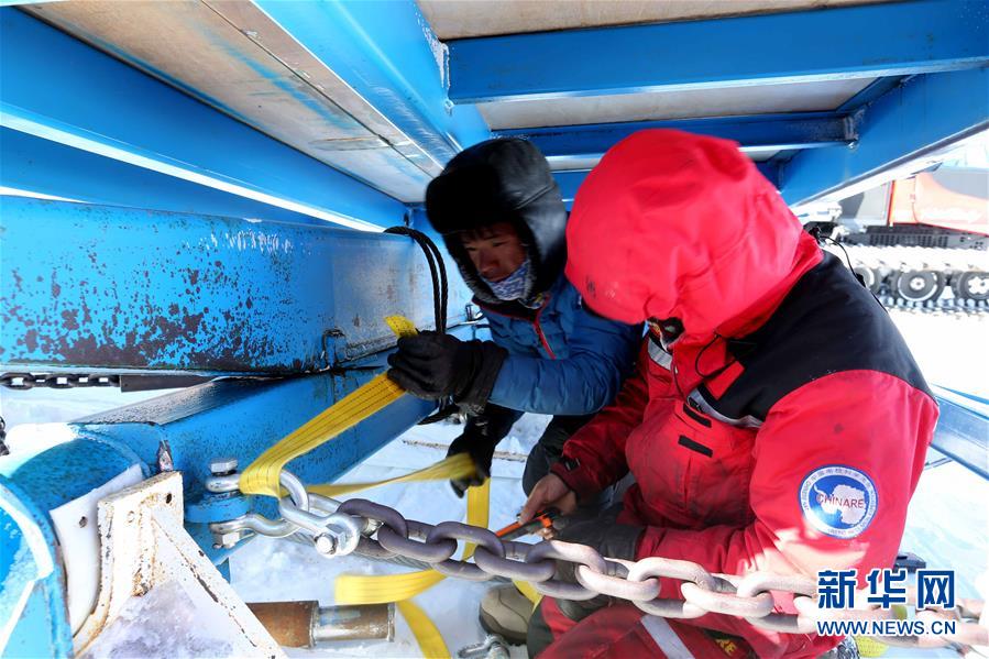 1月4日,昆仑队队员全力修理雪地车的雪橇。
