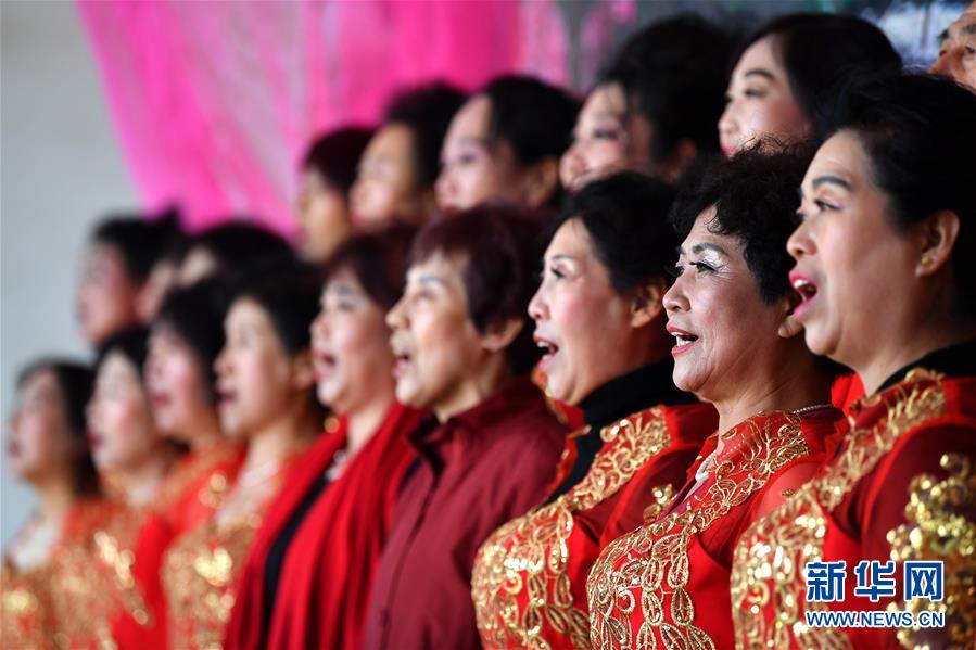 1月3日,在山西省浑源县荆庄村,浑源县贫困山区合唱团在表演大合唱《祖国不会忘记》。 新华社记者 詹彦 摄
