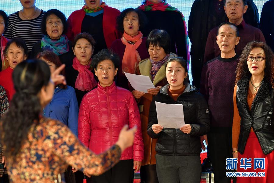 在山西省浑源县贫困山区合唱团的排练厅,团员们在排练大合唱(2018年11月29日摄)。 新华社记者 曹阳 摄