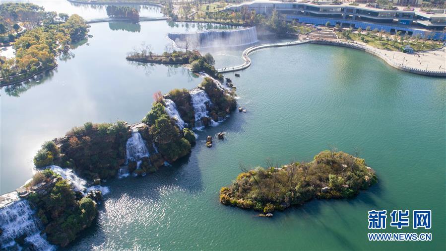 昆明瀑布公园一景(1月5日无人机拍摄)。 新华社记者胡超摄