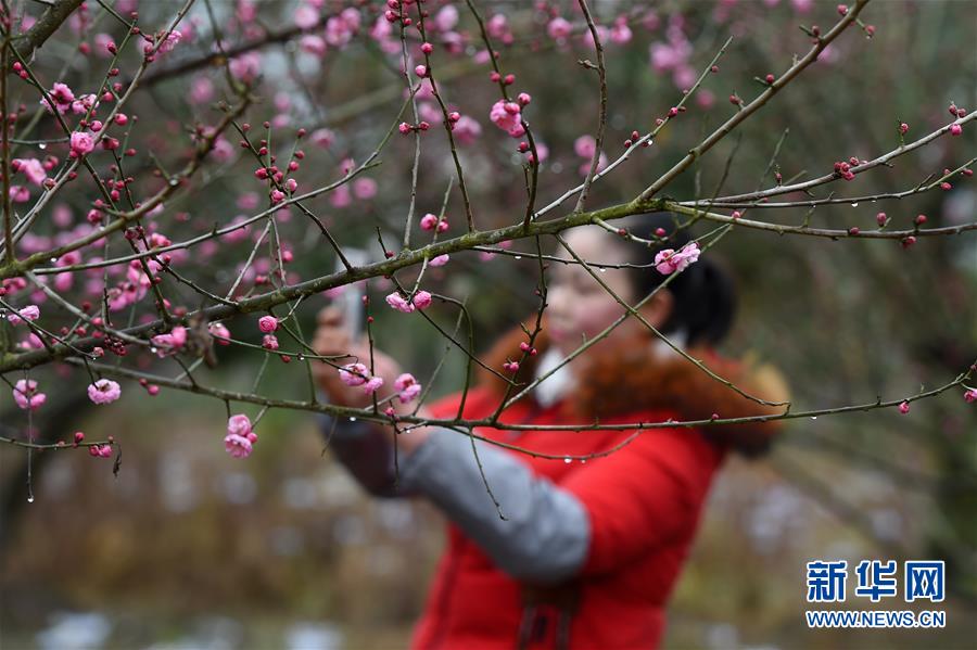 1月5日,市民在贵州遵义市余庆县观光园拍摄梅花。