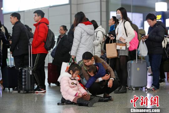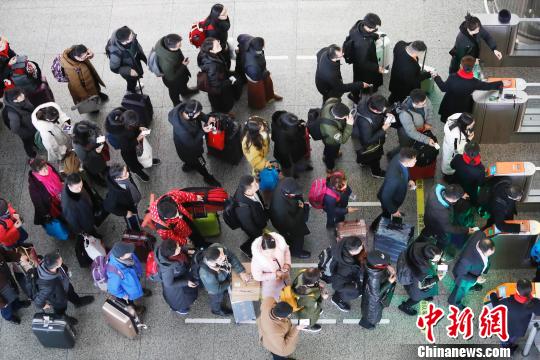 旅客正在铁路上海虹桥站等待验票上车。 殷立勤 摄