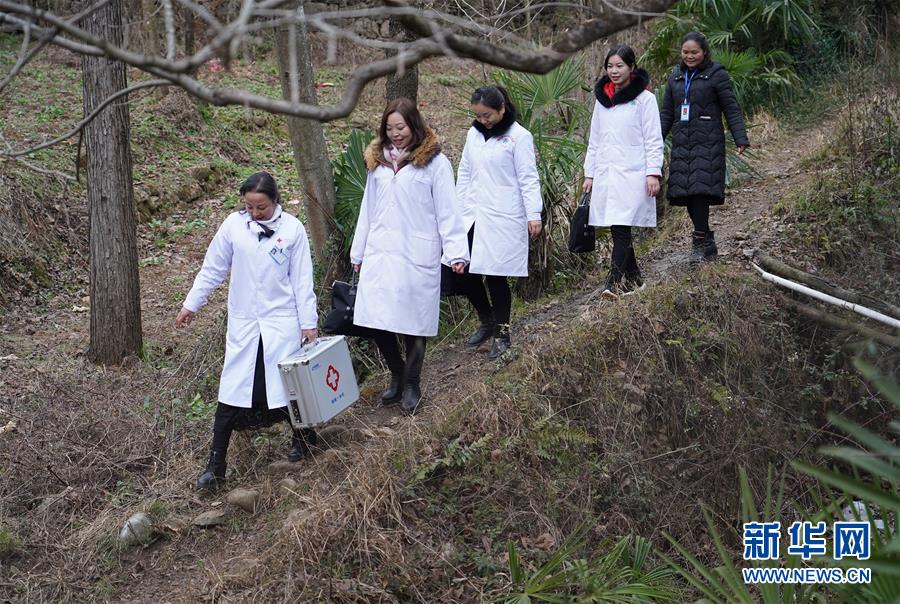 1月5日,镇巴县长岭镇九阵坝村家庭医生签约服务团队人员在走访贫困户的路上。新华社记者 邵瑞 摄