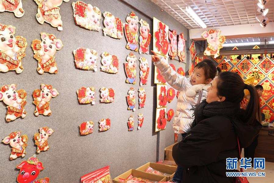 1月6日,顾客在石家庄市长安区义堂村一家批发市场选购新春饰品。 连日来,石家庄市长安区的年货市场日渐红火,众多市民挑选春联、灯笼等特色年货,迎接新春佳节。 新华社发(梁子栋 摄)