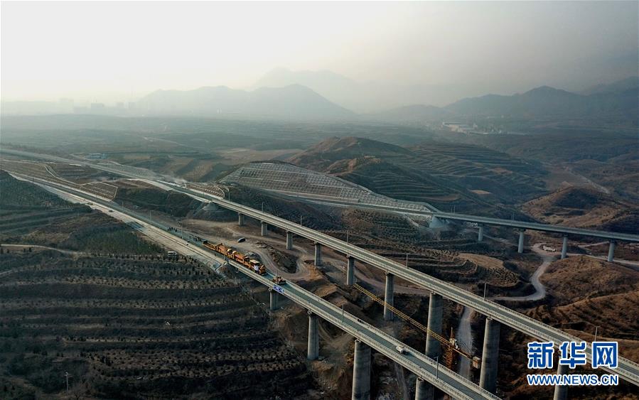 1月6日,工人在崇礼铁路张家口市下花园区戴家营大桥铺轨现场工作(无人机拍摄)。新华社记者杨世尧摄