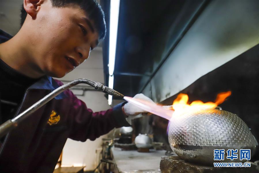 1月6日,工人在河北唐山遵化市马兰峪镇一家银器加工作坊加工银器产品。新华社发(刘满仓 摄)