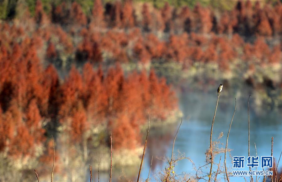 一只鸟在甸尾村水杉湿地停留(1月5日摄)。 新华社记者 秦晴 摄