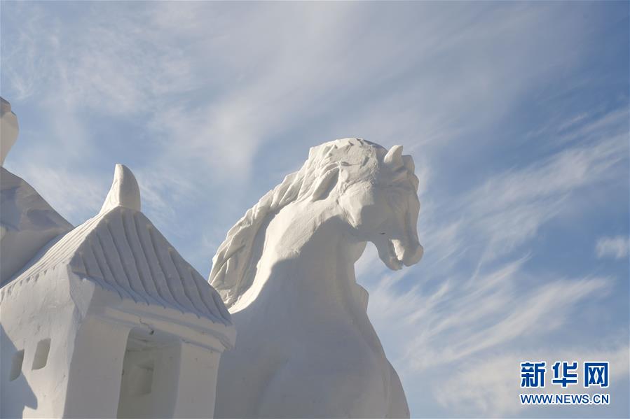 这是1月7日拍摄的河北美术学院参赛雪雕作品《足音》。新华社记者 王松 摄