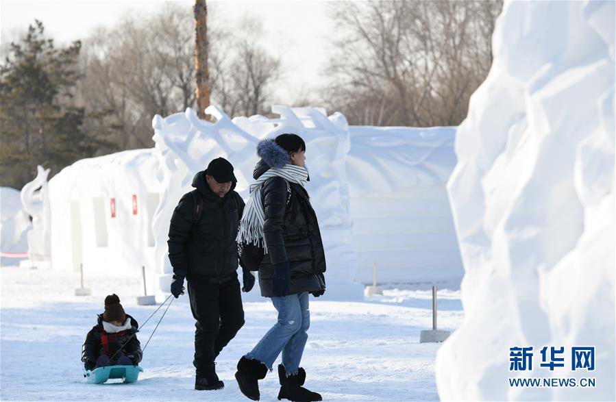 1月7日,游客在哈尔滨太阳岛国际雪雕艺术博览会园区参观。新华社记者 王松 摄