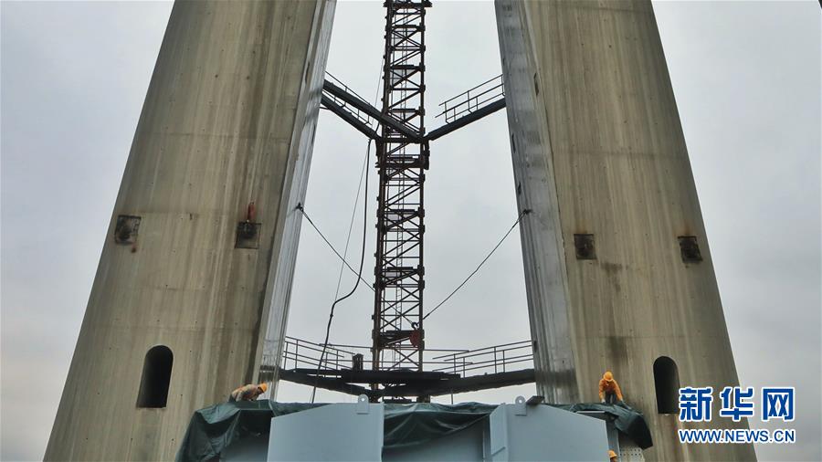1月7日,建设者在世界第一高混凝土桥塔上建设平塘特大桥。 新华社记者欧东衢摄