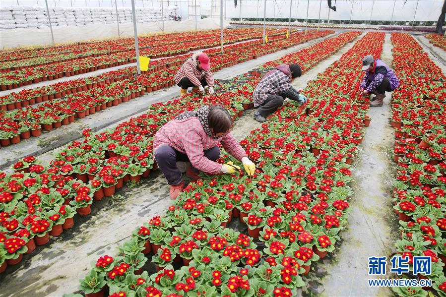1月7日,花农在江苏省海安市城东镇壮志街道现代农业园内劳作。