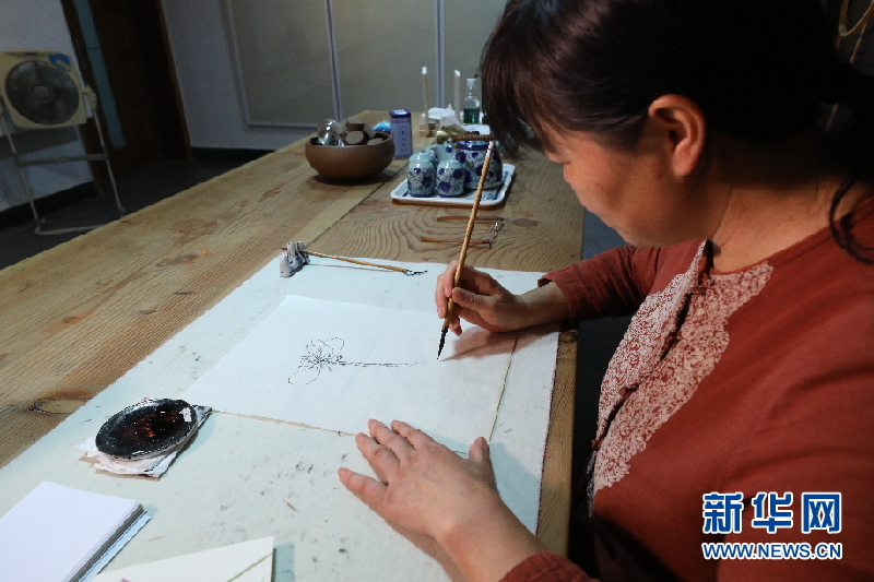 铅笔素描、毛笔画是每一位绣娘的“基本功”。梁雪芳凭借记忆,画下荷花的姿态。