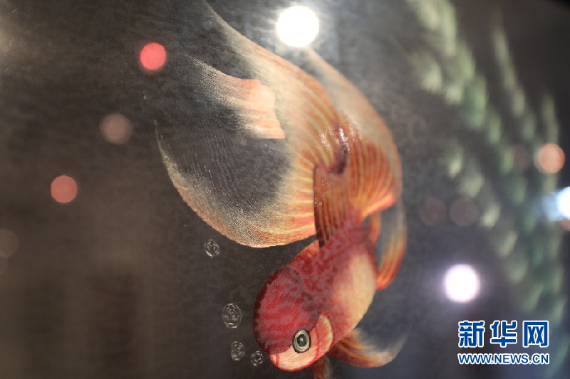 梁雪芳所绣的金鱼劈线后极细的丝条,才可栩栩如生地描摹出金鱼轻薄柔软的尾摆。