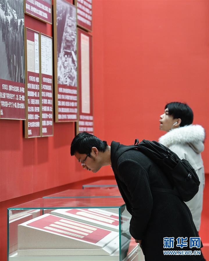 1月8日,观众在参观展览。 截至1月8日,在北京中国国家博物馆举办的“伟大的变革——庆祝改革开放40周年大型展览”累计迎来现场参观人数近255万人次。 新华社记者 李贺 摄