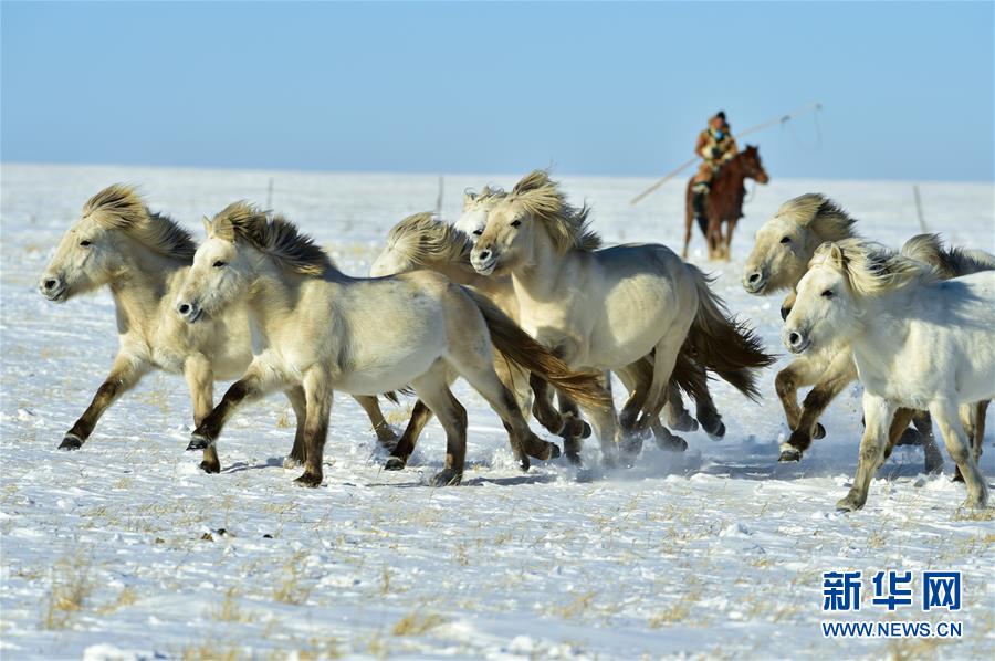 1月8日,牧民进行套马表演。 时下正值草原冬季旅游旺季,内蒙古自治区西乌珠穆沁旗的牧民们在雪原上一展身手,为游客展现独特的民族风情。 新华社记者 邹予 摄