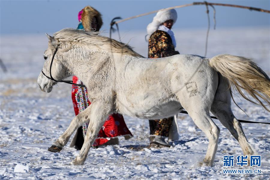 1月8日,牧民进行套马表演。 时下正值草原冬季旅游旺季,内蒙古自治区西乌珠穆沁旗的牧民们在雪原上一展身手,为游客展现独特的民族风情。 新华社记者 刘磊 摄