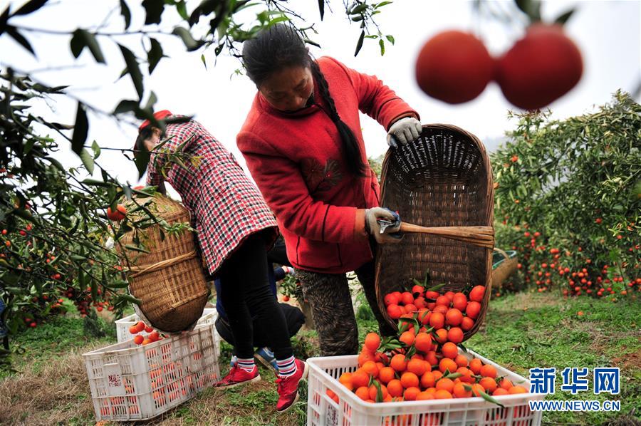 1月8日,湖北省宜昌市夷陵区鸦鹊岭镇海云村杨店红柑橘专业合作社社员将采摘的“楚留香”柑橘装筐。 新年伊始,在湖北省宜昌市夷陵区鸦鹊岭镇海云村杨店红柑橘专业合作社的千亩晚熟橘园里,晚熟柑橘新品种“楚留香”挂满枝头,社员们加紧采收、错峰销售,以满足各地春节市场的果品需求。 新华社发(张国荣 摄)
