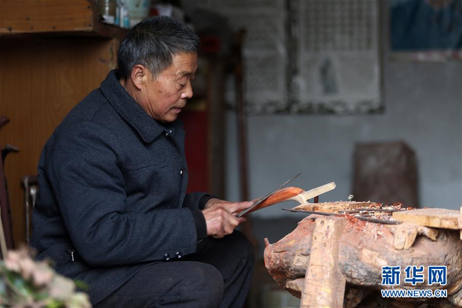 1月8日,乐泉村村民高振保在制作二胡琴杆。 山东省临沂市郯城县庙山镇乐泉村手工二胡制作历史悠久。二胡结构简单,实则制作难度很大,需要切割、打磨、凿、雕、刻等多道工序,每一道工序都决定着乐器的质量。乐泉村全村有90多户村民常年从事二胡、京胡等民族乐器制作,产品销往全国各地。 新华社发(张春雷 摄)