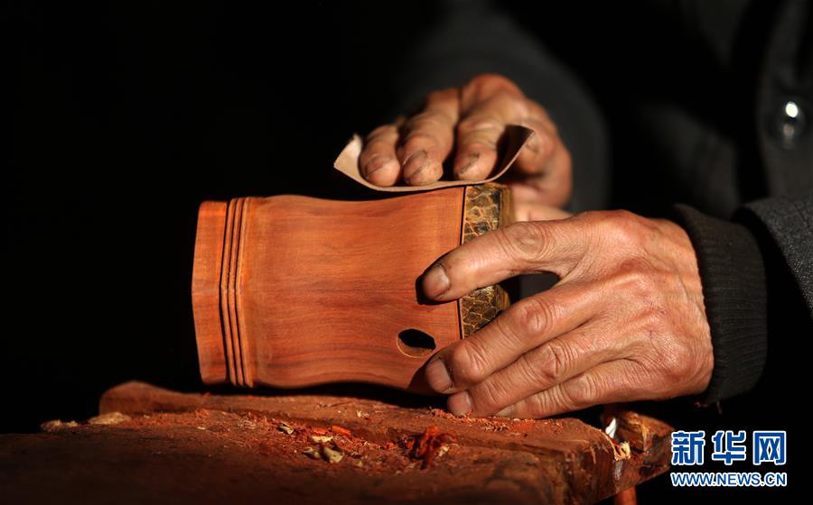 1月8日,乐泉村村民高振保在制作二胡音盒。 山东省临沂市郯城县庙山镇乐泉村手工二胡制作历史悠久。二胡结构简单,实则制作难度很大,需要切割、打磨、凿、雕、刻等多道工序,每一道工序都决定着乐器的质量。乐泉村全村有90多户村民常年从事二胡、京胡等民族乐器制作,产品销往全国各地。 新华社发(张春雷 摄)