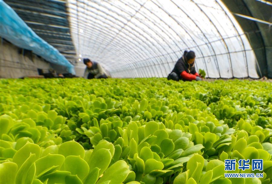 1月9日,在涉县固新镇连泉多肉植物种植基地,农民管护多肉植物。新华社记者 王晓 摄
