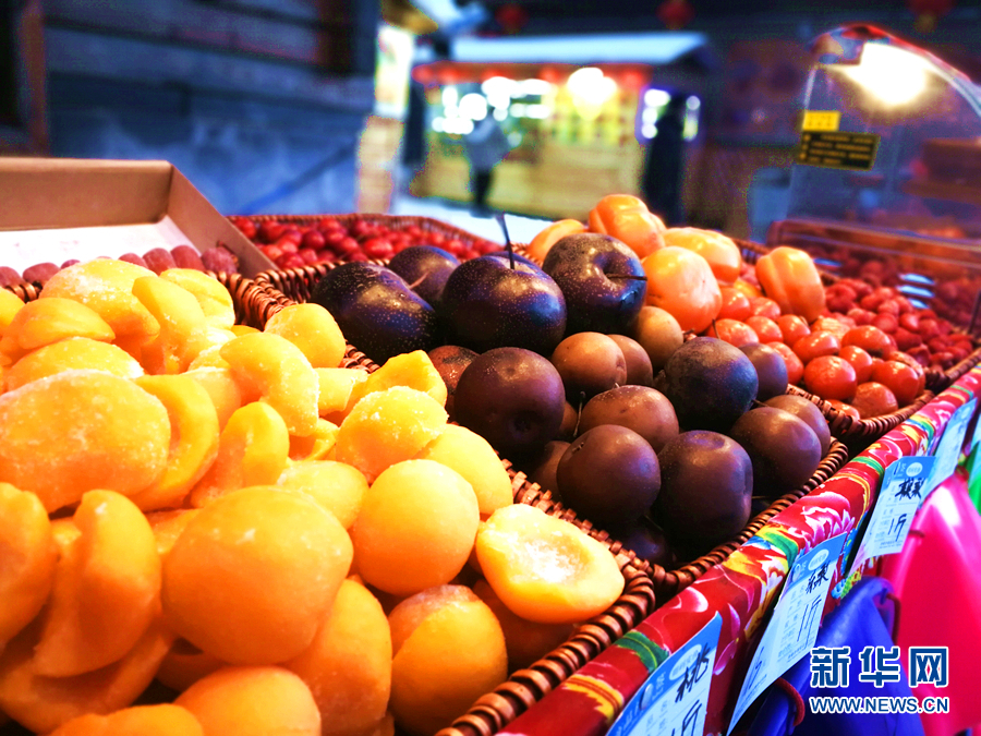 冻梨、冻桃、冻柿子是北国典型的风味小吃。 新华网记者 张明宇 摄