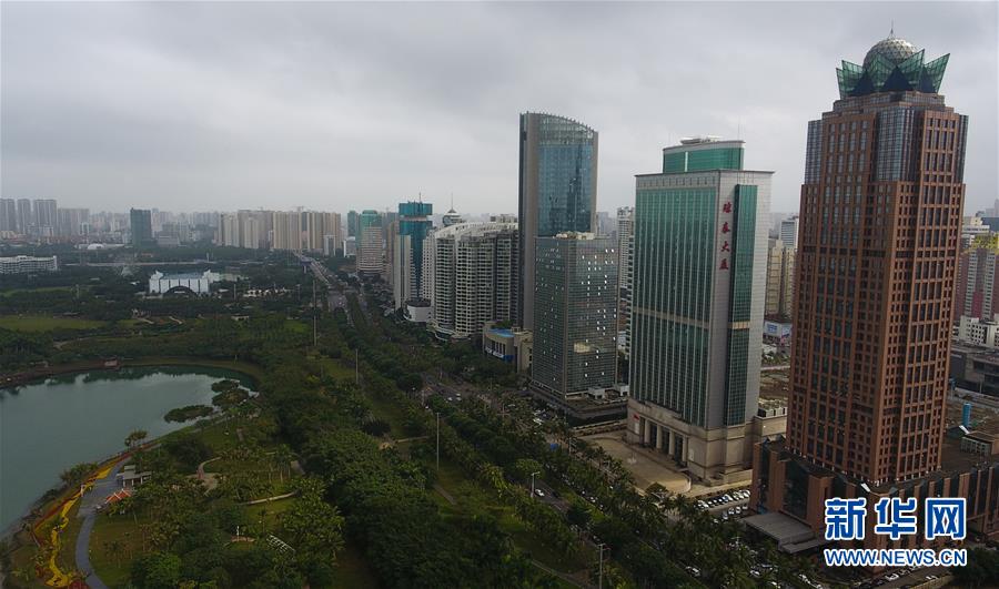 海口市滨海大道上的建筑(1月9日无人机拍摄)。 新华社记者 杨冠宇 摄