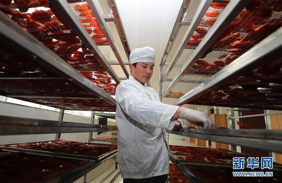 1月9日,在广西灵川县三街镇,村民全建军在翻看红薯干。 新华社发
