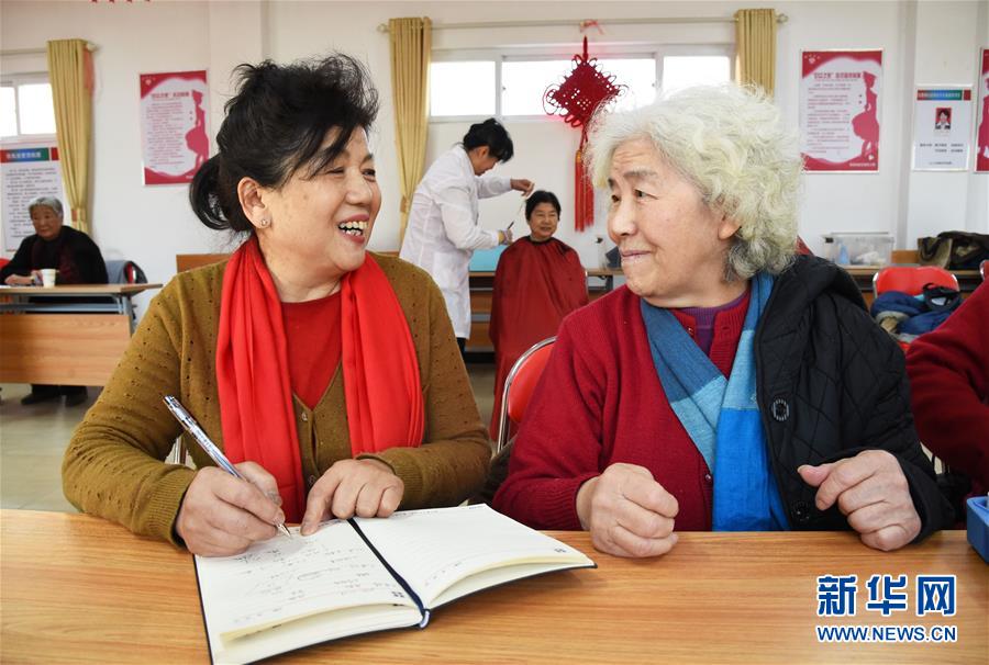 1月9日,董锦香坐着轮椅一边织毛衣,一边陪丈夫董基东清扫路面。
