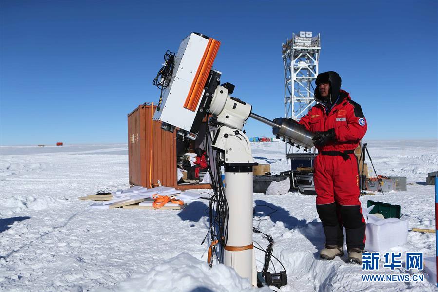 1月9日,南极太阳多色望远镜在昆仑站完成安装。 中国第35次南极科学考察队昆仑队9日在昆仑站完成南极太阳多色望远镜安装。这是昆仑站首台白昼天文观测设备,可在极昼期间对太阳进行连续观测,同时开展空间碎片观测。 新华社记者 刘诗平 摄