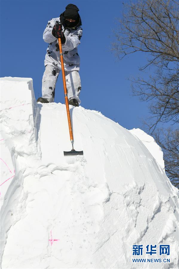 1月10日,参赛选手在哈尔滨太阳岛国际雪雕艺术博览会园区进行雪雕创作。 当日,第二十四届中国·哈尔滨国际雪雕比赛在哈尔滨太阳岛国际雪雕艺术博览会园区开铲,共有来自19个国家和地区的29支队伍参加比赛。 新华社记者 王松 摄