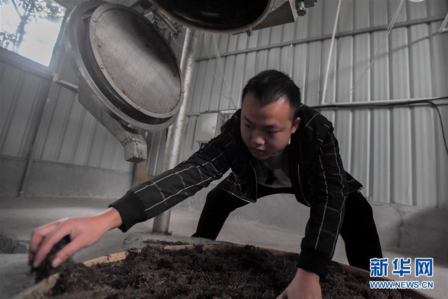 公司员工回收经设备提炼精油后的迷迭香叶子,用于二次加工(1月8日摄)。 新华社发(陈泽国摄)