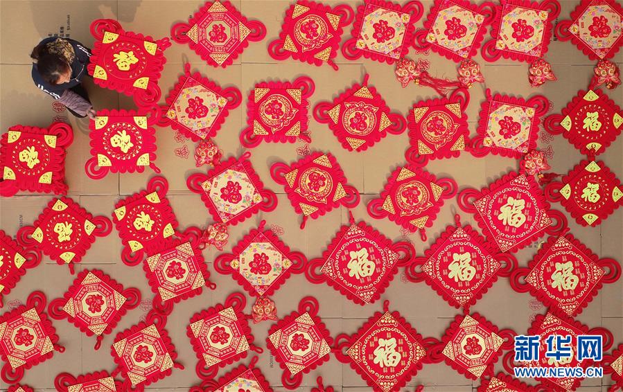 1月10日,在河北省邢台县晏家屯镇心长村扶贫小院,村民在晾晒中国结饰品。 新华社发(陈雷 摄)