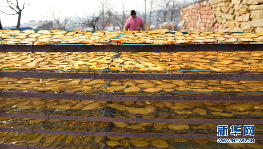 山东枣庄:冬日地瓜干晾晒忙