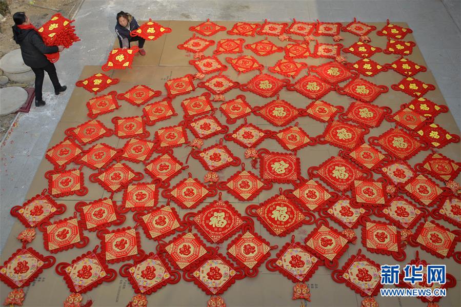 1月10日,在河北省邢台县晏家屯镇心长村扶贫小院,村民在晾晒中国结饰品。 新华社发(陈雷 摄)