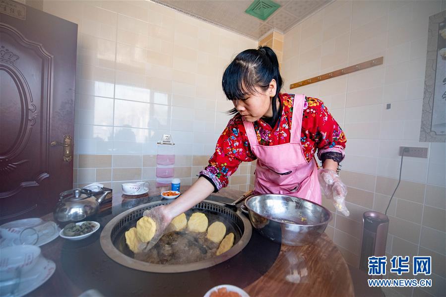 1月10日,在舒兰市二合屯,农家乐老板杨会为游客准备东北特色菜肴。 新华社记者张楠摄