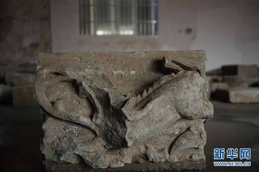 这是考古工作人员在梅城镇收集到的牌坊石构件(1月10日摄)。 新华社记者 翁忻旸 摄