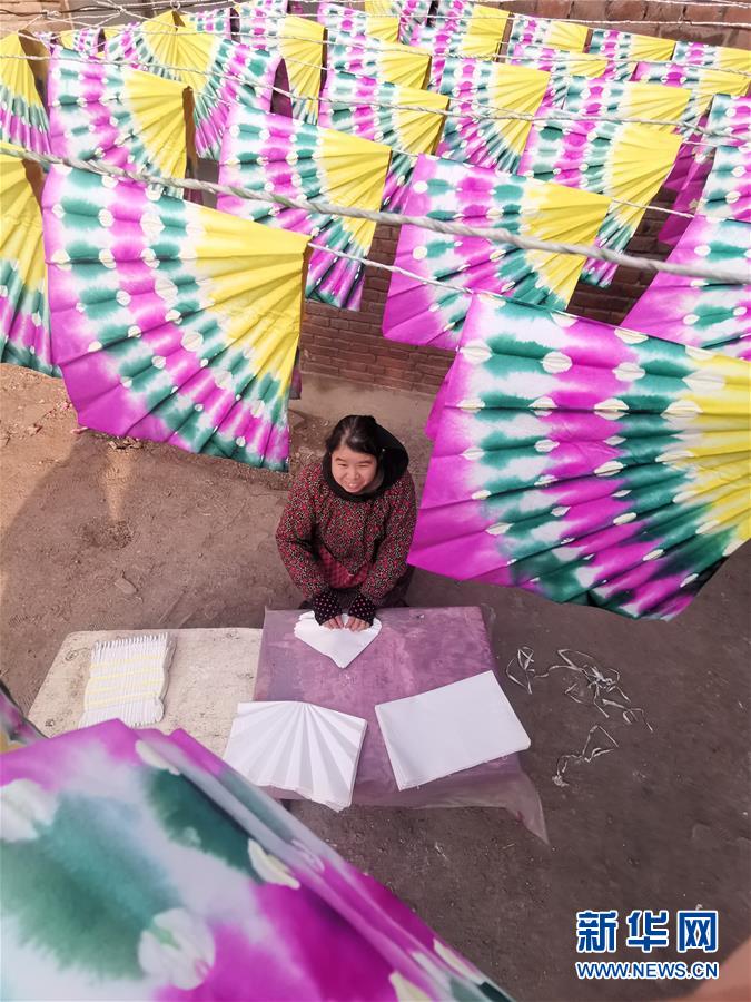 1月10日,在河北省石家庄市栾城区邵家庄村,彩子制作人邵文清在制作彩子。 新华社发(刘沛然 摄)