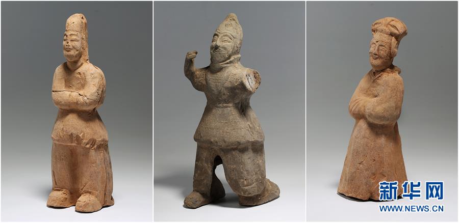 这是雷家村十六国时期墓葬出土的陶俑(拼版资料照片)。新华社发