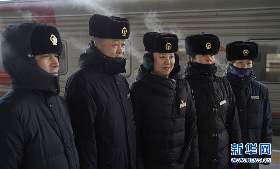 1月11日,在满洲里火车站站台,由于气温近零下30摄氏度,“金钥匙”服务台客运员“呵气成雾”。