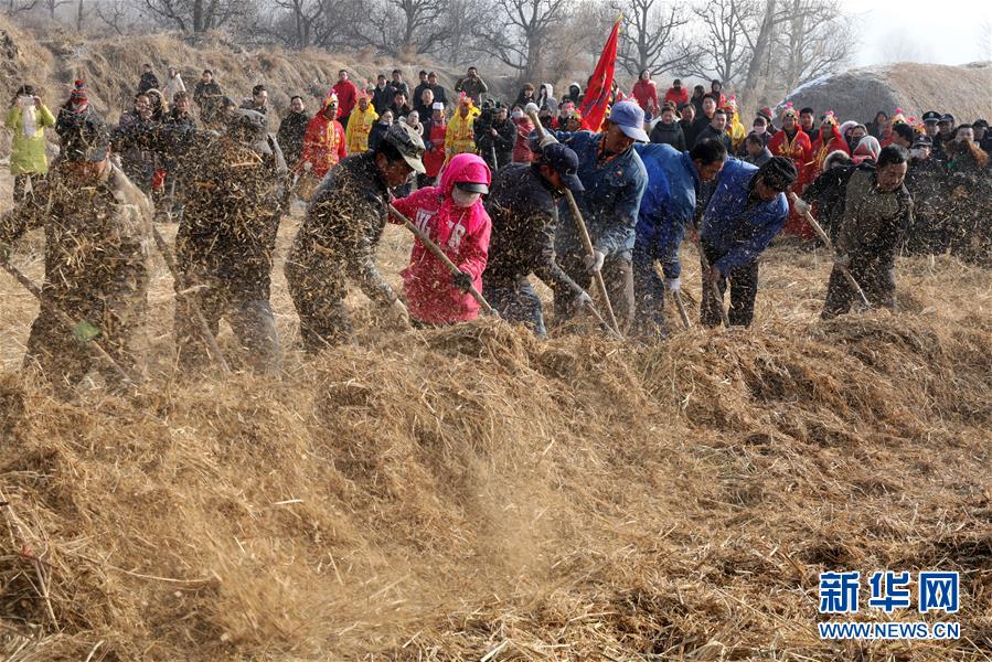 1月11日,在兰州市西固区张家大坪村,农民掀起稻草收割韭黄。新华社记者 王铭禹摄