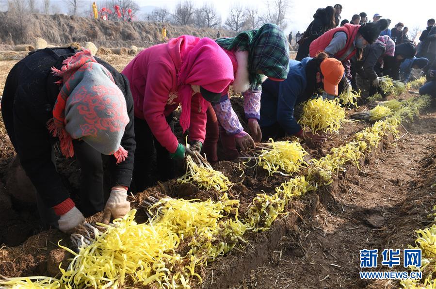 1月11日,在兰州市西固区张家大坪村,农民在收割韭黄。新华社记者 范培珅摄