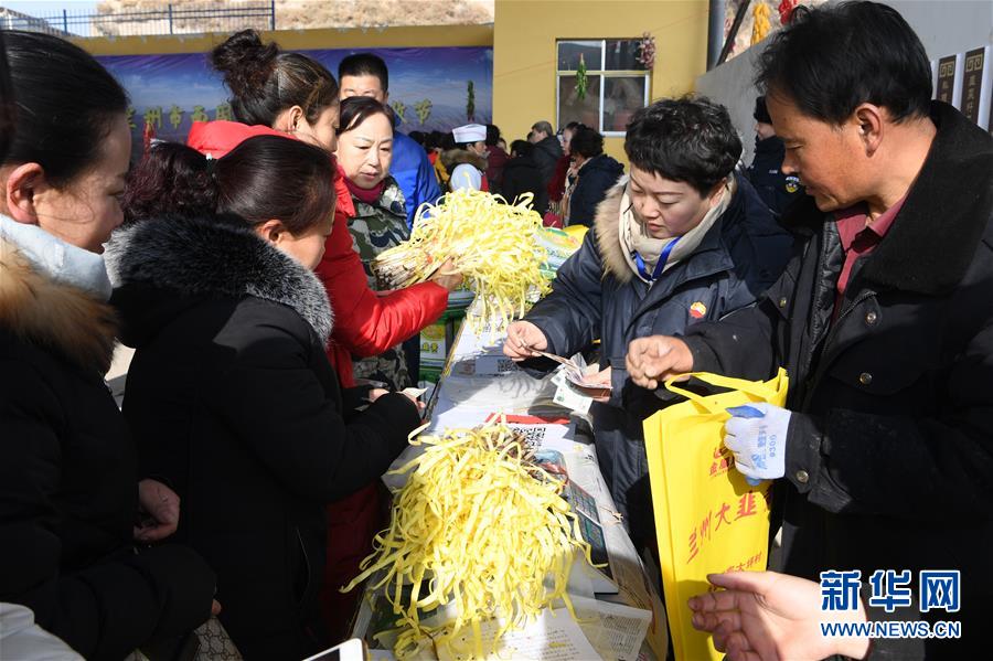 1月11日,在兰州市西固区张家大坪村,市民在选购韭黄。新华社记者 范培珅摄
