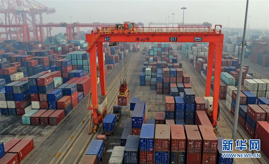 这是唐山港京唐港区集装箱码头(1月11日无人机拍摄)。 新华社记者 杨世尧 摄