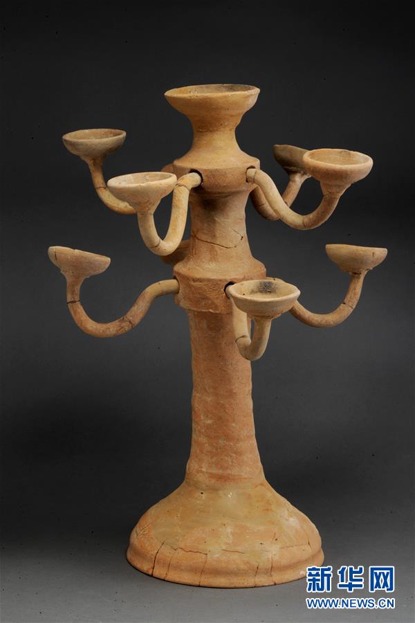 这是雷家村十六国时期墓葬出土的九枝莲灯(资料照片)。 新华社发