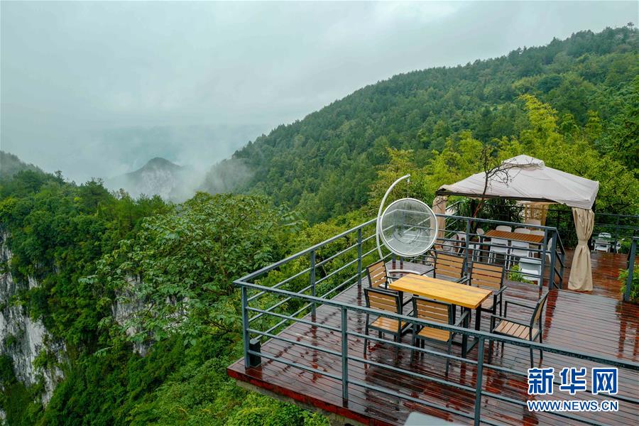 重庆市武隆区仙女山镇荆竹村依托独特地形打造的特色民宿——归原小镇(2018年9月12日摄)。 新华社记者 刘潺 摄