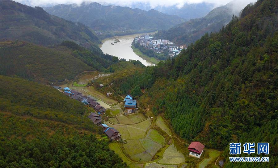 1月10日拍摄的广西柳州市三江侗族自治县良口乡大滩村芝打屯(无人机拍摄)。